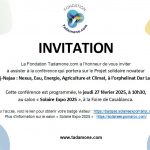 La Fondation Tadamone.com a l’honneur de vous inviter à assister à la conférence qui portera sur le Projet solidaire novateur « Idmaj-Najaa : Nexus, Eau, Energie, Agriculture et Climat, à l’orphelinat Dar Lamima».